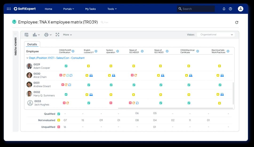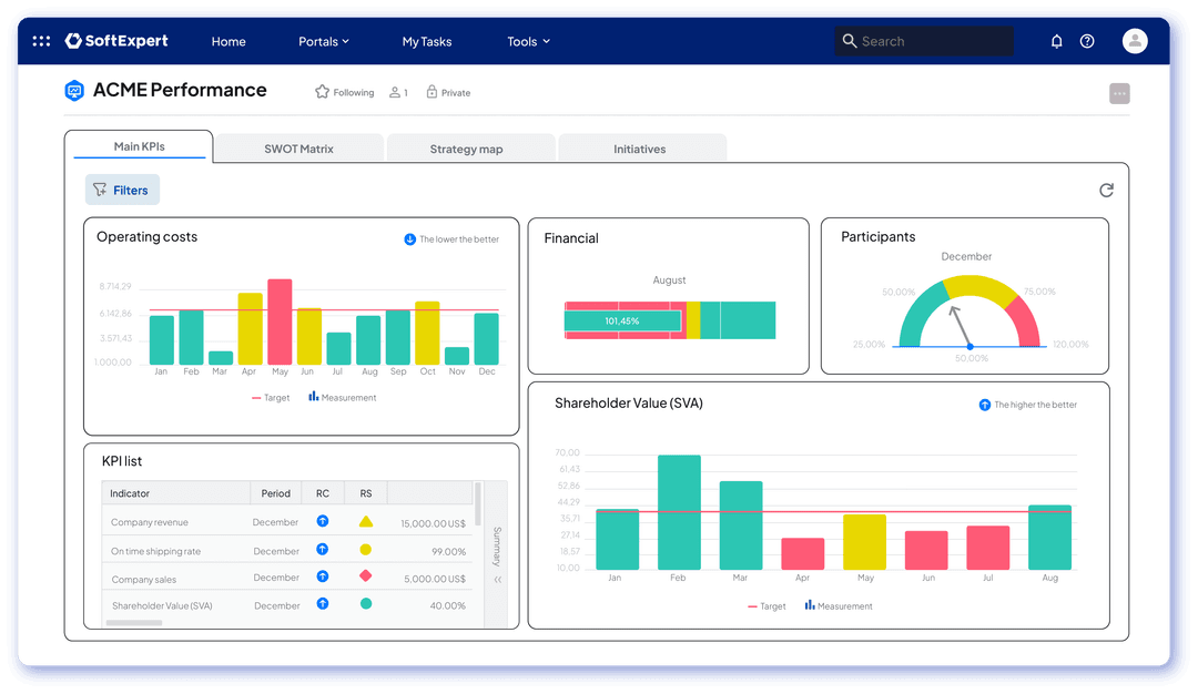 SoftExpert offre soluzioni integrate per digitalizzare le operazioni, garantire la conformità normativa e sviluppare i talenti, dalle Risorse Umane alla Governance. Automatizza i flussi logistici, centralizza i documenti critici, rafforza la gestione dei rischi e dei progetti e potenzia i team con maggiore agilità. Adattati ai cambiamenti del mercato con intelligenza e mantieni la tua azienda competitiva in un ambiente dinamico e altamente esigente.