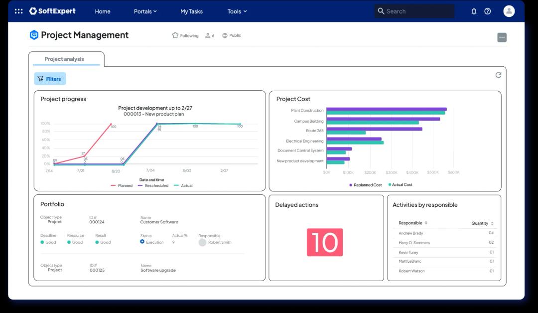 - Gestisci portafogli con decine di progetti simultanei attraverso workflow intelligenti, dashboard e indicatori in tempo reale.